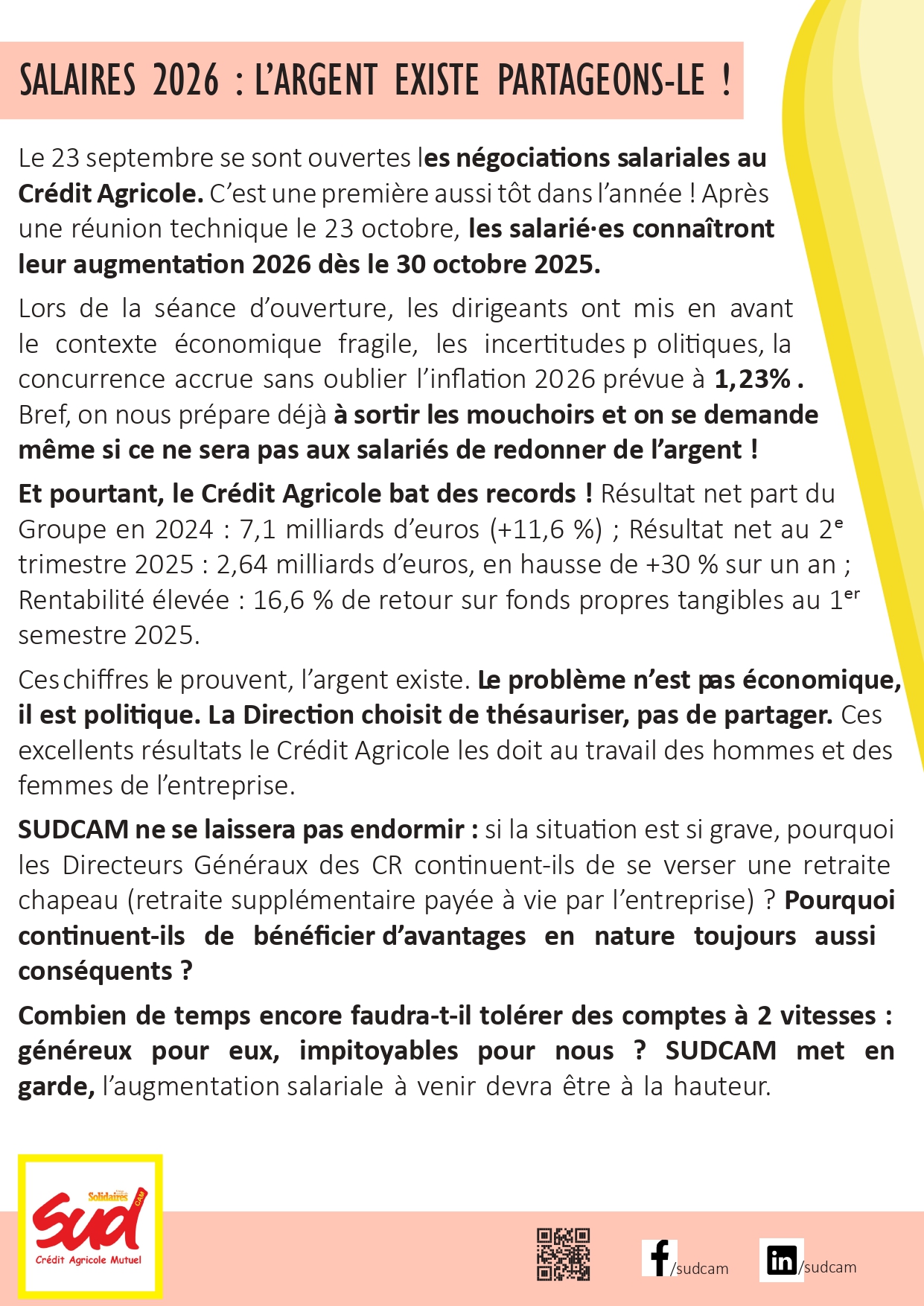 Au national…CA parle des SALAIRES et dès fin septembre avec les NAO 2026 qui débutent (Négociations Annuelles Obligatoires).