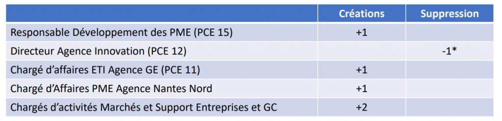 - Cela nous permet de renforcer l’organigramme avec un fonctionnement plus en proximité. D’où la création d’un poste. On investit aussi pour le suivi des ETI. (Entreprise taille intermédiaire).